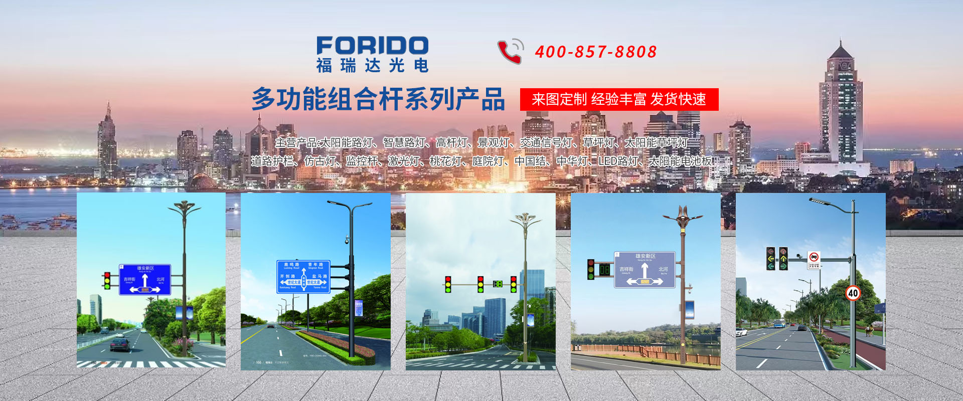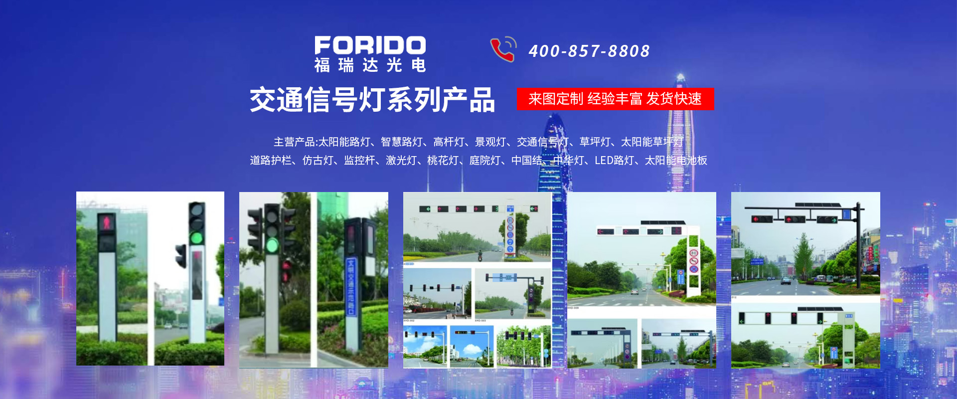 揚(yáng)州福瑞達(dá)光電科技有限公司位于淮左名都?xì)v史文化名城、中國路燈制造基地?fù)P州市北郊菱塘工業(yè)園,公司占地面積76000平方米,注冊資金10518萬元,擁有高級技術(shù)嫻熟的員工280多人,擁有大型折彎機(jī)、激光切割、數(shù)控注塑機(jī)、壓鑄機(jī)、自動埋弧焊、氣焊、彩色粉末靜電噴塑等大型自動化設(shè)備,我公司是一家集設(shè)計(jì)、研發(fā)、生產(chǎn)、銷售、施工安裝服務(wù)為一體的戶外交通照明產(chǎn)品制造商,主要生產(chǎn)智慧路燈、太陽能路燈、LED路燈、高桿燈、景觀燈、交通信號燈、交通標(biāo)志牌、通信鐵塔、路跨鋼結(jié)構(gòu)、公交站臺、太陽能光伏組件、景點(diǎn)亮化、樓宇亮化工程的設(shè)計(jì)施工等。公司秉承開拓創(chuàng)新、銳意進(jìn)取、精誠服務(wù)的企業(yè)精神,堅(jiān)持以“誠信為本、技術(shù)為先、服務(wù)是金”的合作理念,我們憑借先進(jìn)的制造工藝、優(yōu)質(zhì)的產(chǎn)品質(zhì)量、合理的市場價(jià)格和完善的售后服務(wù)贏得了廣闊的市場和客戶的信賴?! ∥夜疽淹ㄟ^ISO9001質(zhì)量體系認(rèn)證、ISO14001環(huán)境管理體認(rèn)證,CQC產(chǎn)品認(rèn)證,中國節(jié)能產(chǎn)品認(rèn)證,通過“CCC”強(qiáng)制性產(chǎn)品認(rèn)證,具有市政總承包,照明,交安,設(shè)計(jì)等資質(zhì)···